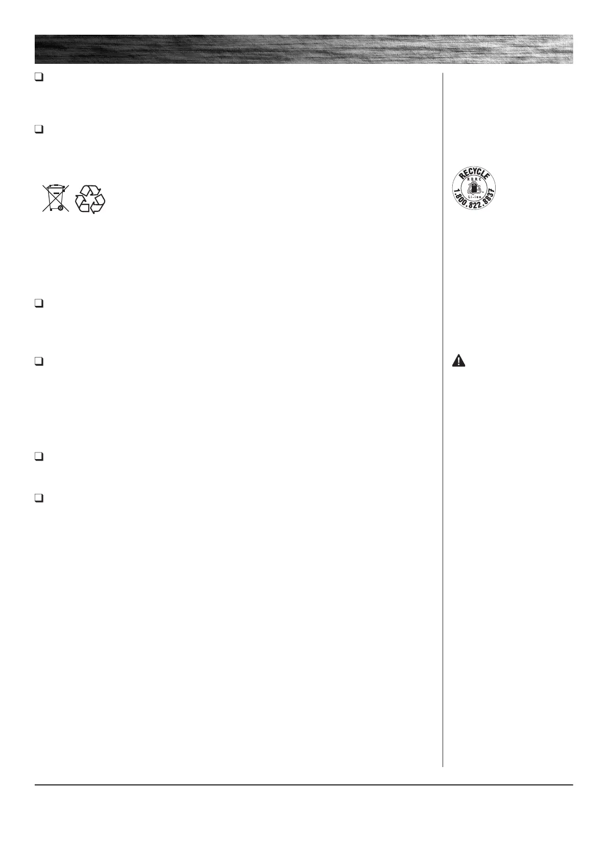 with household trash is prohibited by law in most areas. Return exhausted batteries to a federal or state approved