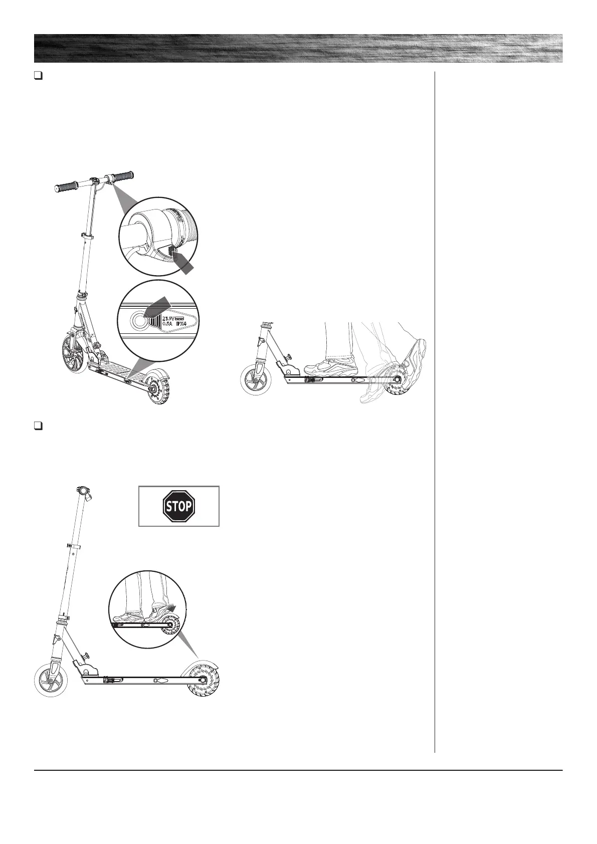 For controlled stops, release the throttle and apply the brake by putting pressure on the rear-fender brake. Razor