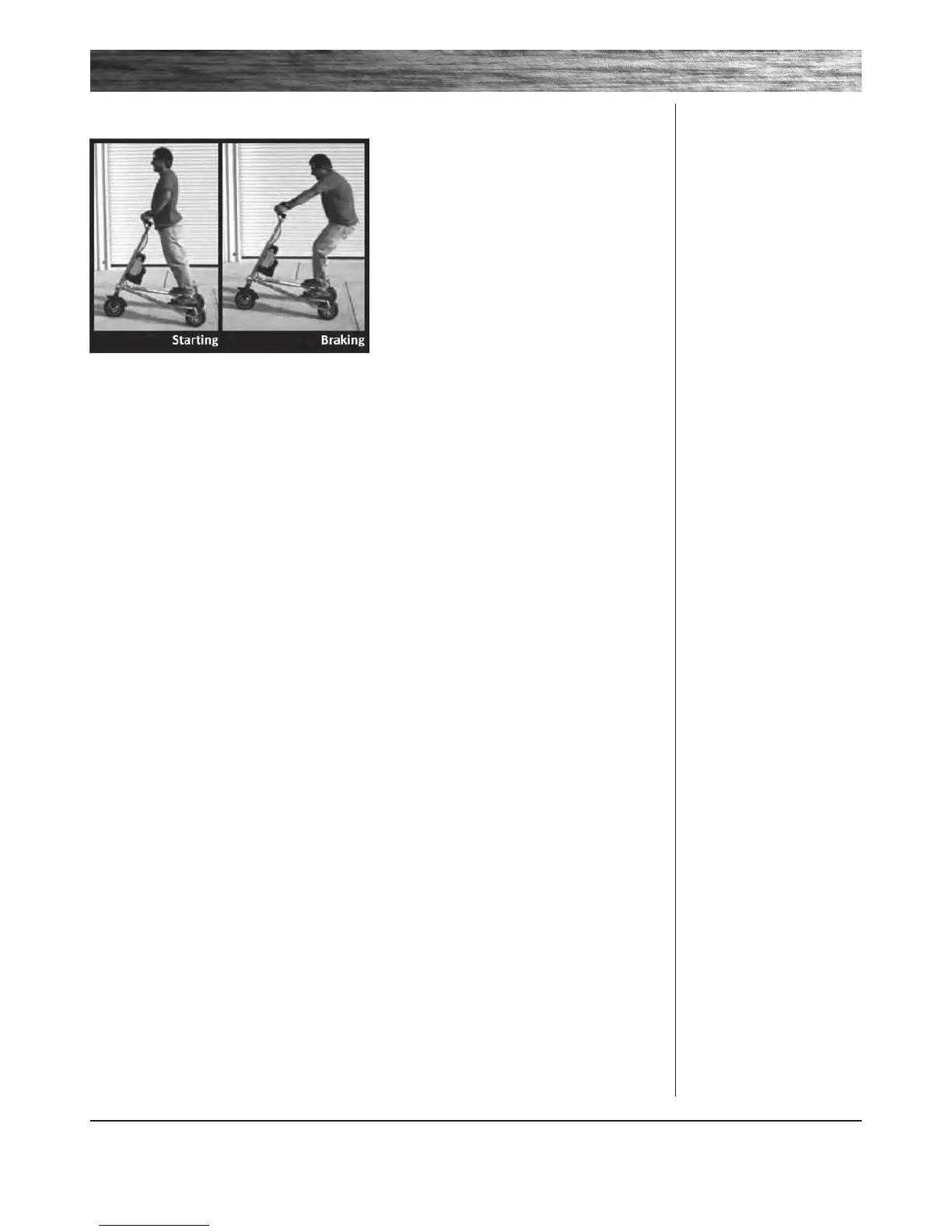 To brake more effectively, shift your weight back over your heels, over the rear wheels, as shown in the picture, but be