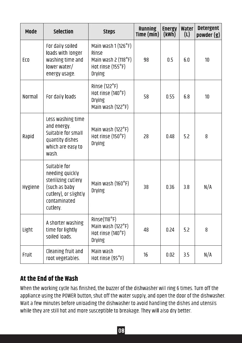 Whenthe working cycle has finished, the buzzerof the dishwasher will ring 6 times. Turn off the