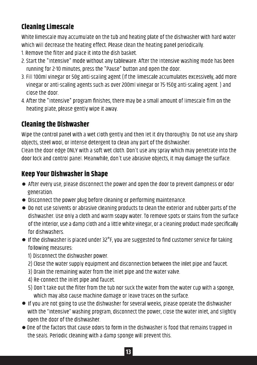 Whitelimescalemavaccumulateonthe tub and heatingplate ofthe dishwasherwith hardwater