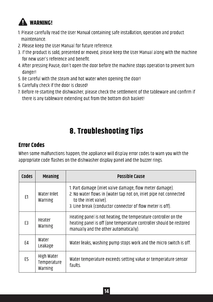 Whensome malfunctionshappen,the appliancewill displayerror codesto warnvouwith the