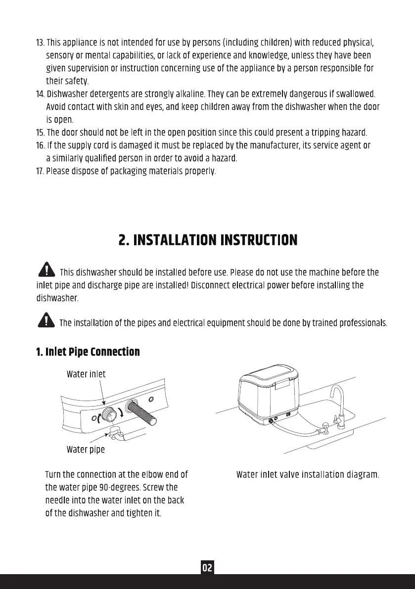 Theinstallation of the pipes and electrical equipment should be done bv trained professionals.