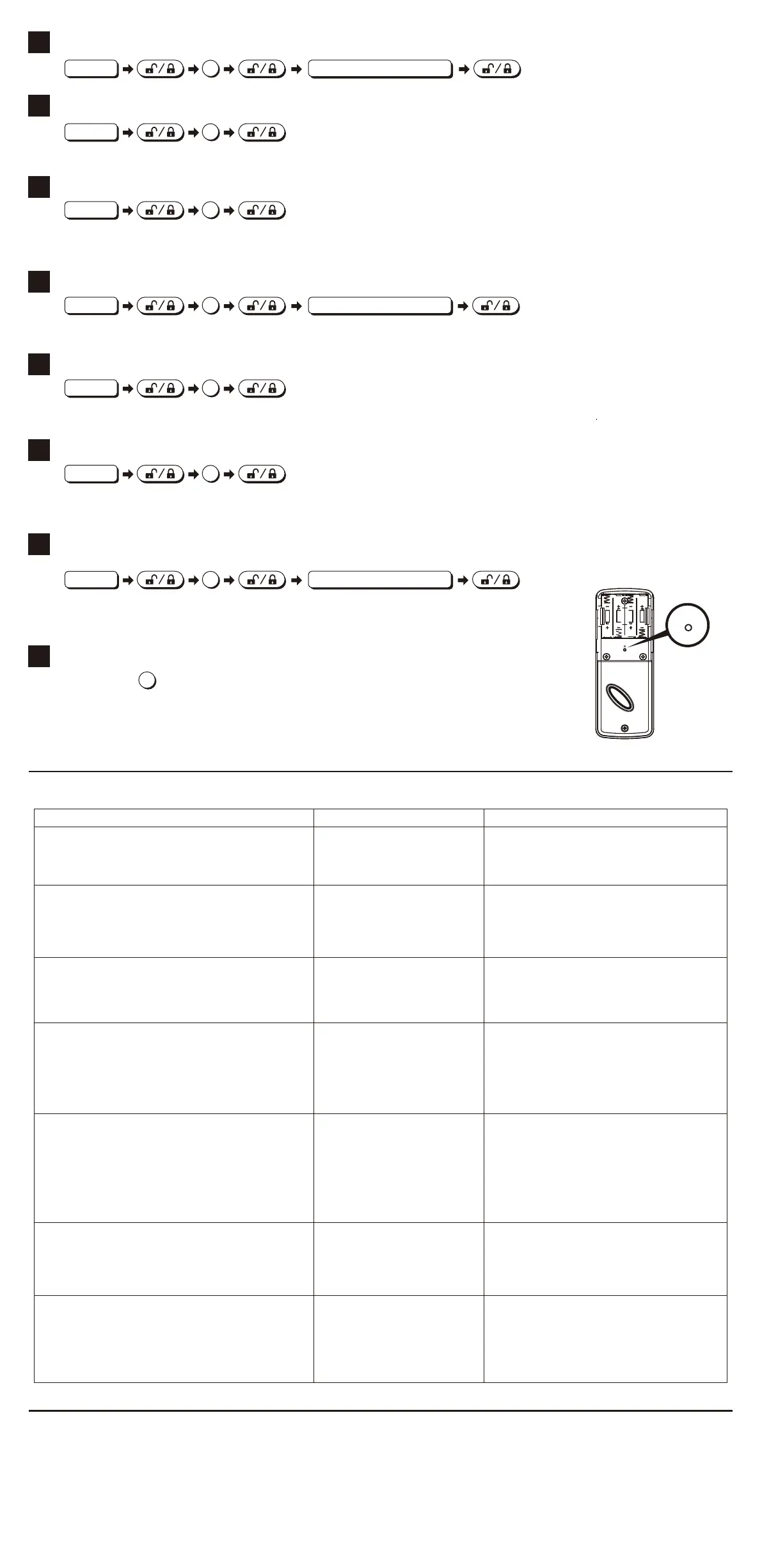 Note: Auto-locking and keypad locking functions will be invalid when user codes are deleted. The lock can only be operated by key during that time.