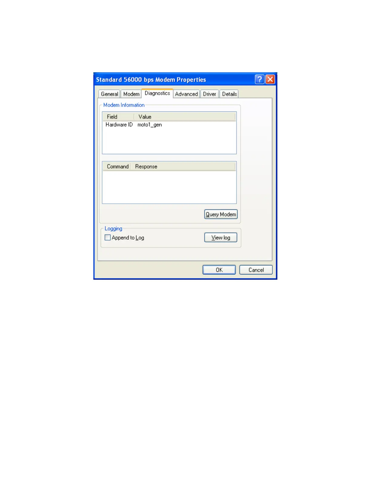 Figure 5: Modem Diagnostics properties
