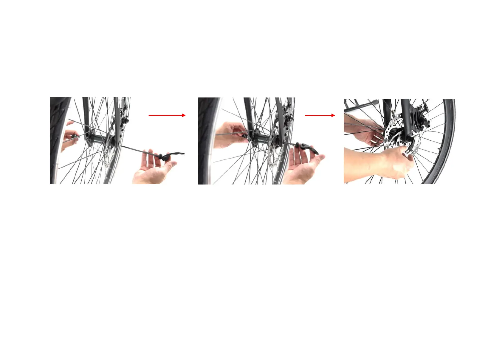 Remove the front wheel quick release lever, fix the front wheel to the front fork, and finally tighten the quick release lever.
