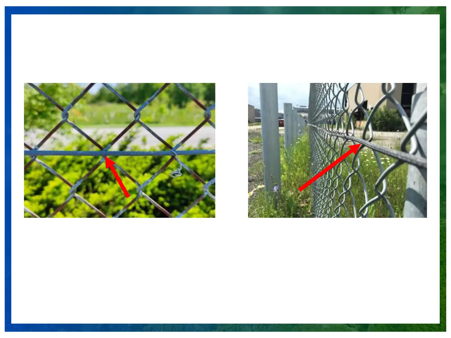Attach the cable to the fence within the groove formed by the chain link low point (see above).