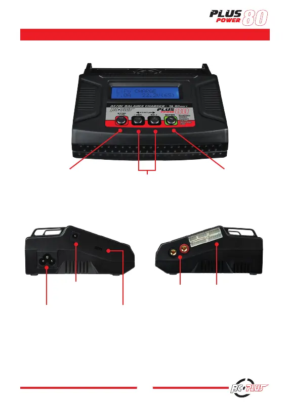 RC-Plus PLUS POWER 80 - Charger Layout and Controls; Button Functions and Ports