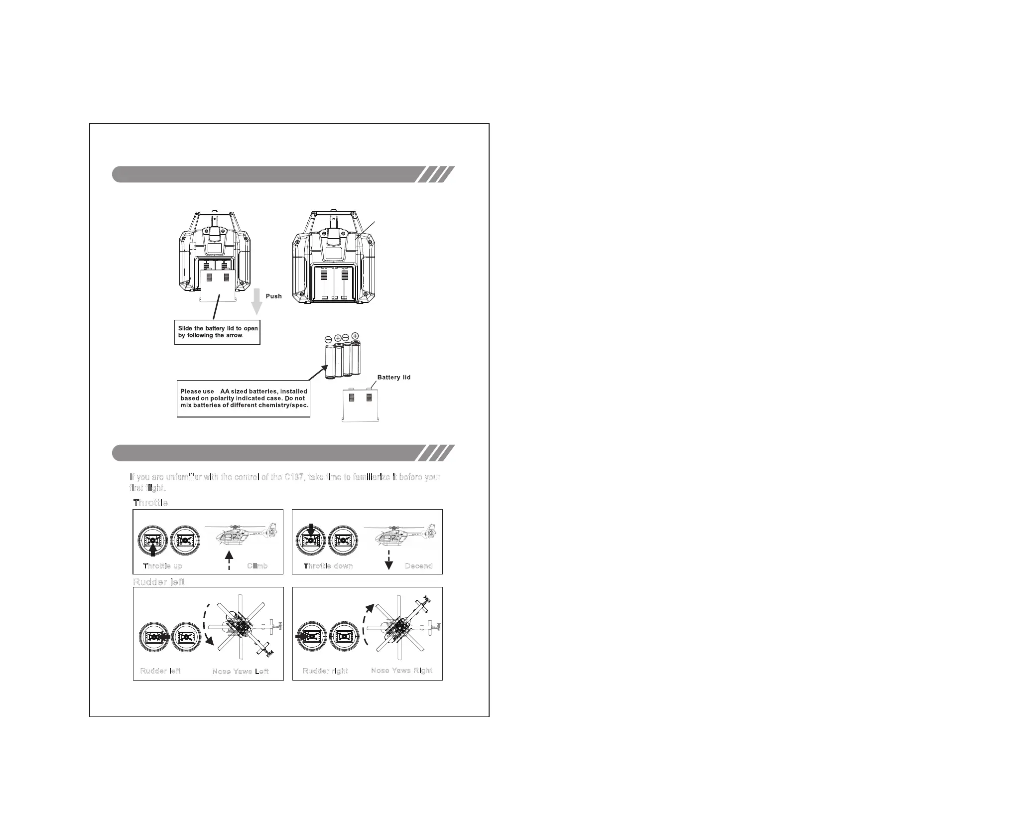 RC REA C187 - Remote Controller Battery Installation; Install 4 AA Batteries; Control Operation Basics; Throttle Control