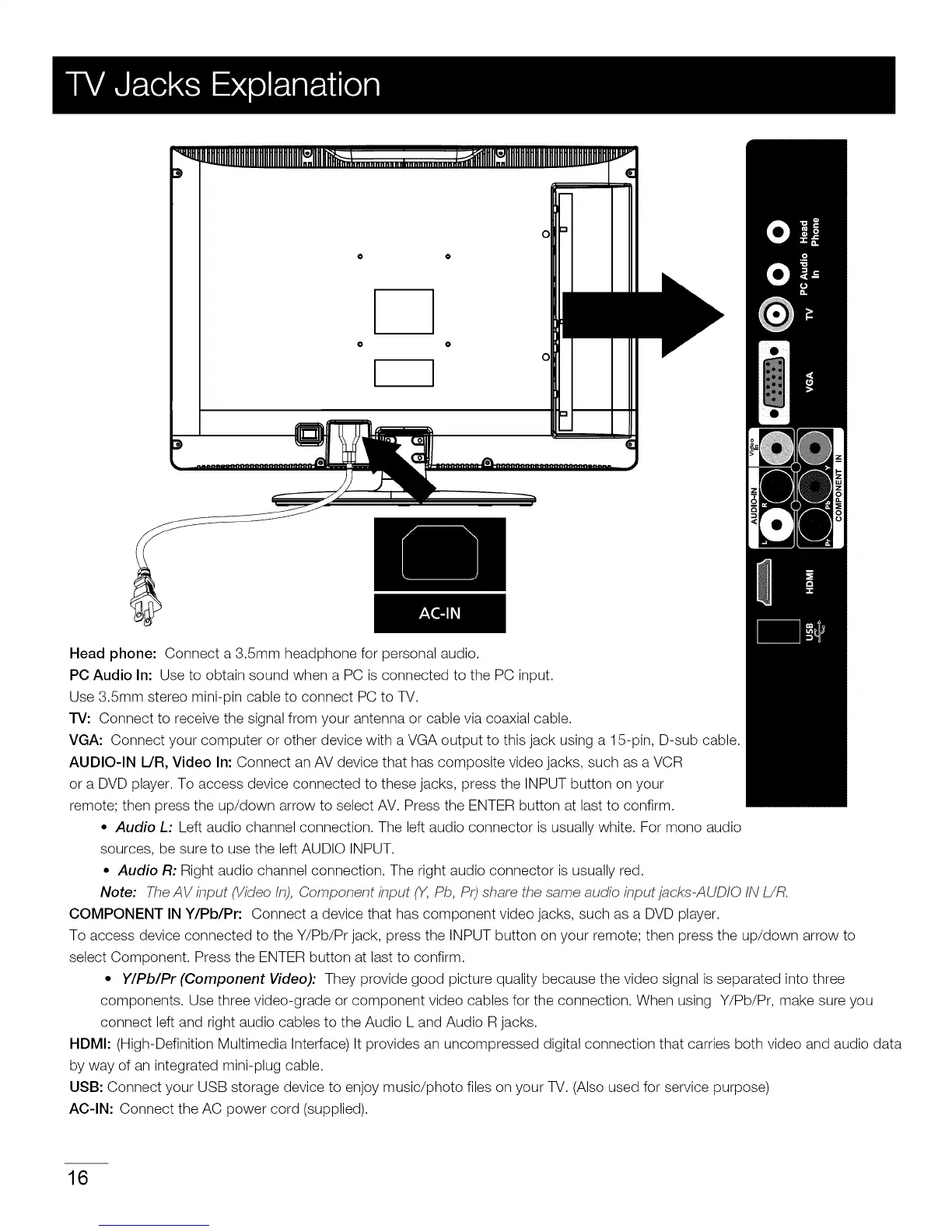 Note: The AV input (Video In), Component Znput _, Pb, Pr) share the same audio Znput jacks-AUD/O tN L/R.