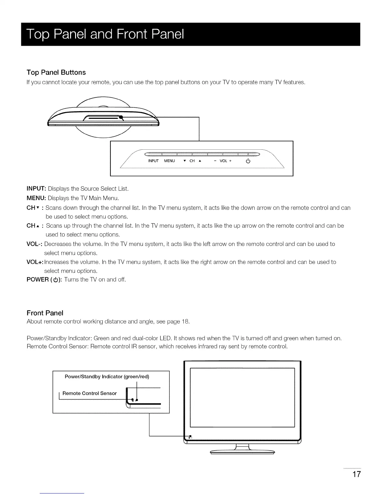 Ifyou cannot locate your remote, you can use the top panel buttons on your TV to operate many TV features.