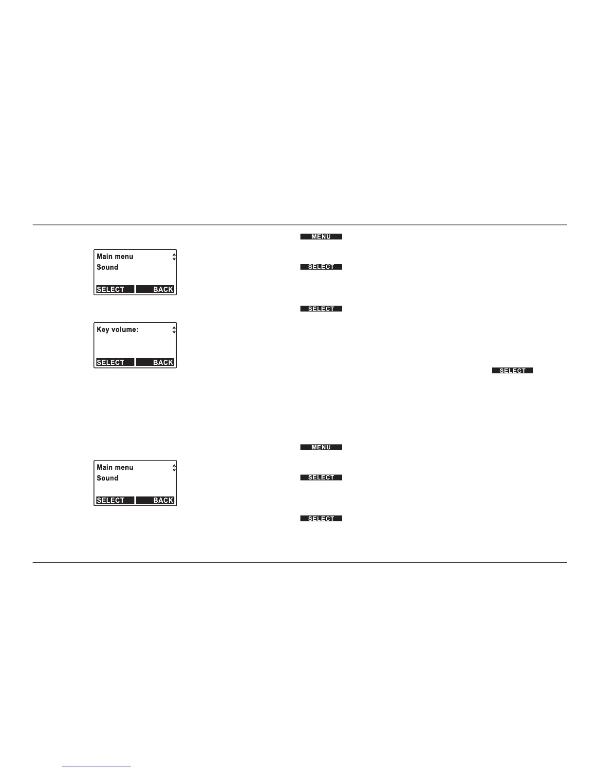 “Key volume” appears on the display.