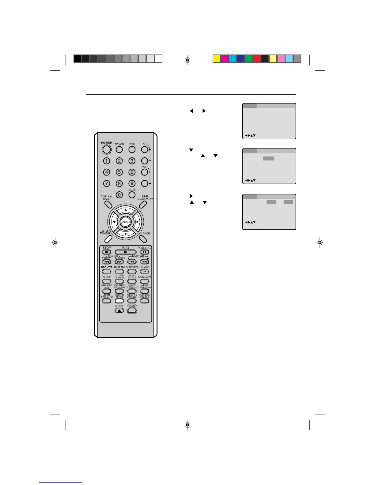 Press SETUP or RETURN to remove the MENU screen.