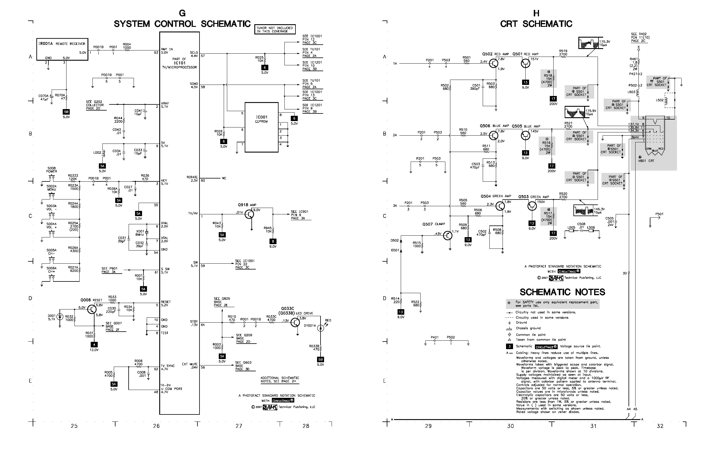 RCA 27V412TYX8 - System Control Schematic (Section G); CRT Schematic (Section H); Red, Green, Blue Amplifiers
