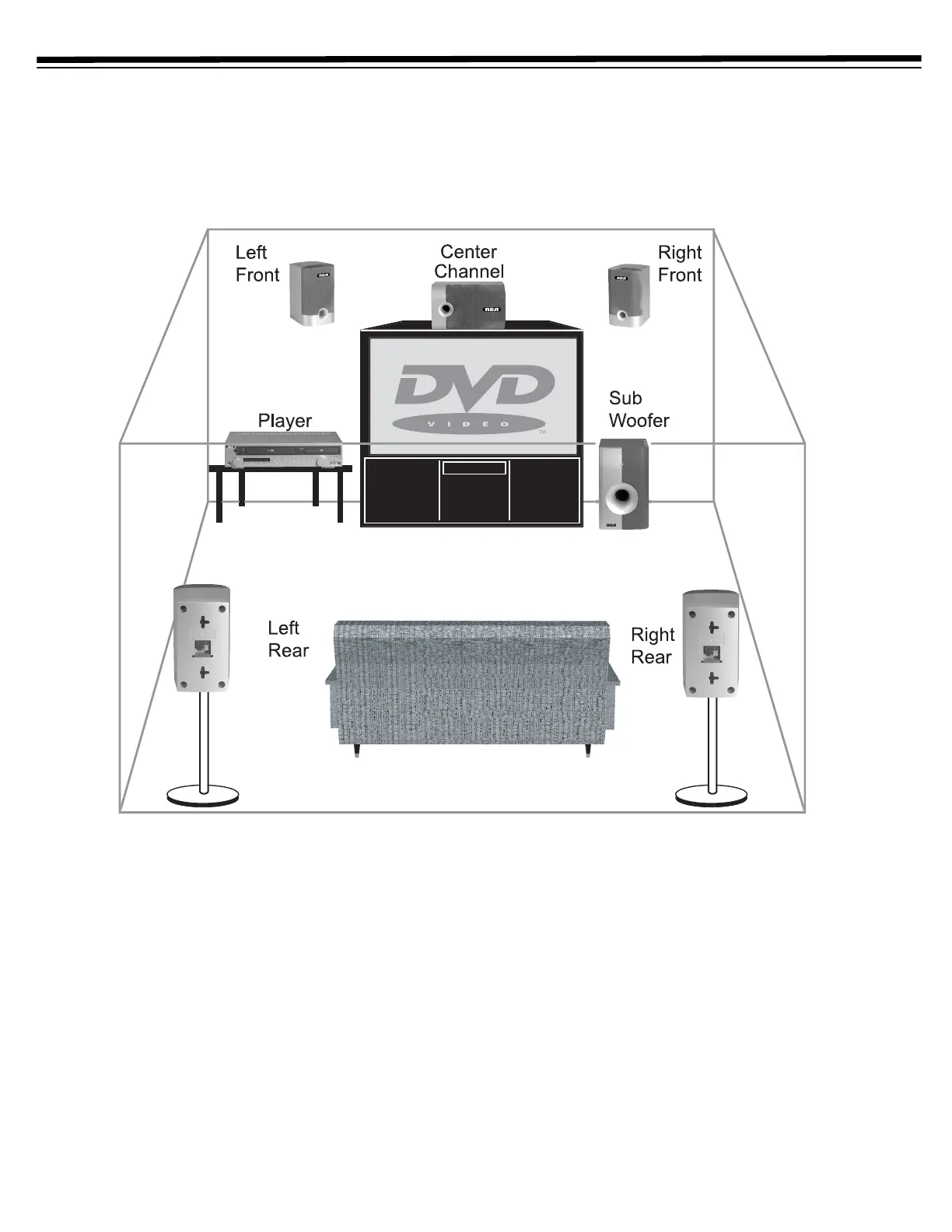 For best results, arrange the six speakers in your listening area as shown: