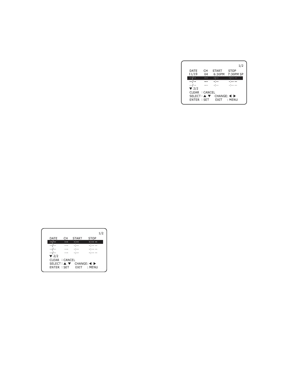 5. Use the up/down arrow keys to set when to record, and then
