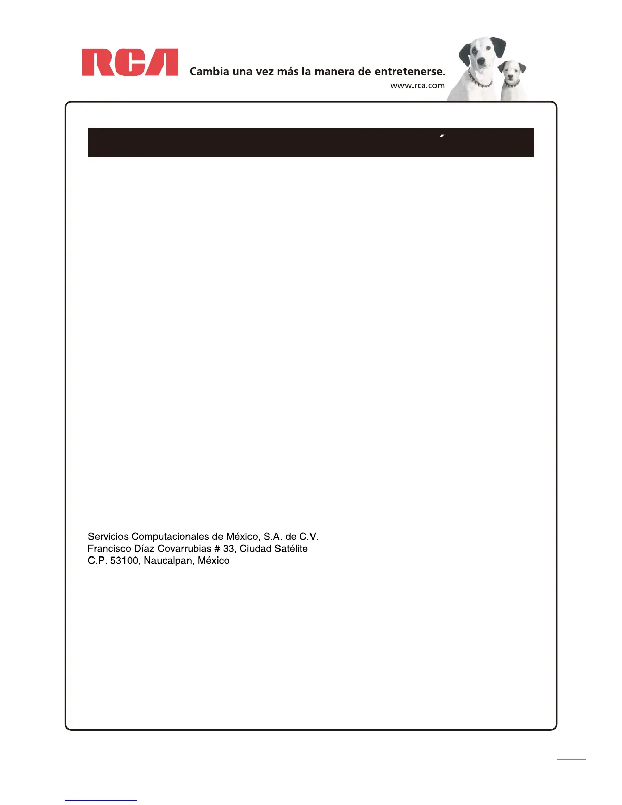 Para asistencia en México: si compró un aparato RCA en México, favor de llamar al: 01-800-823-