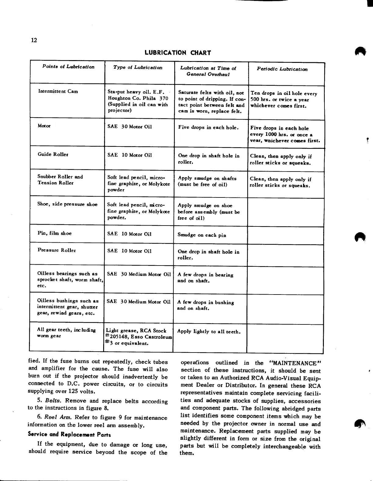 LUBRICATION CHART