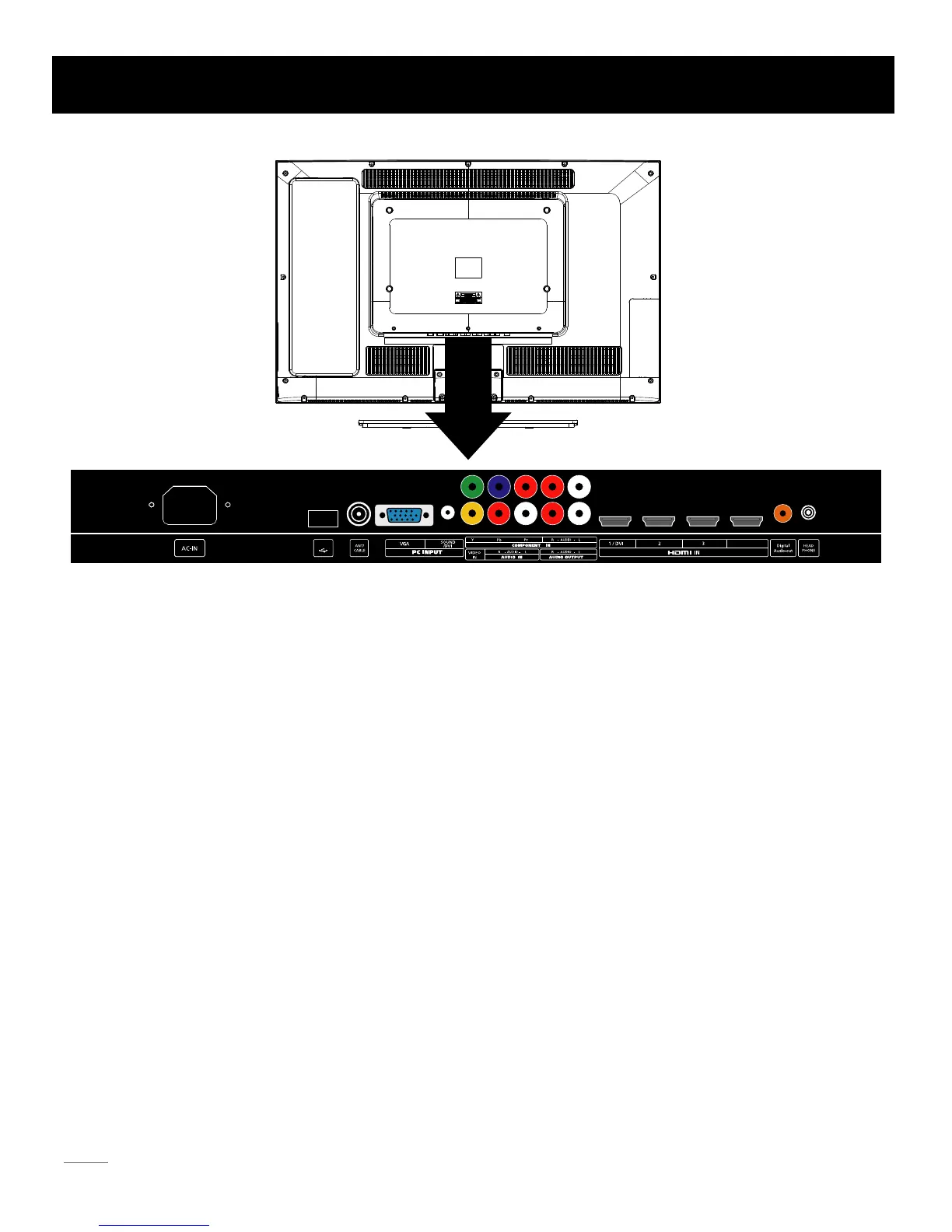 PC INPUT VGA: Connect your computer or other device with a VGA output to this jack using a 15-pin, D-sub cable.