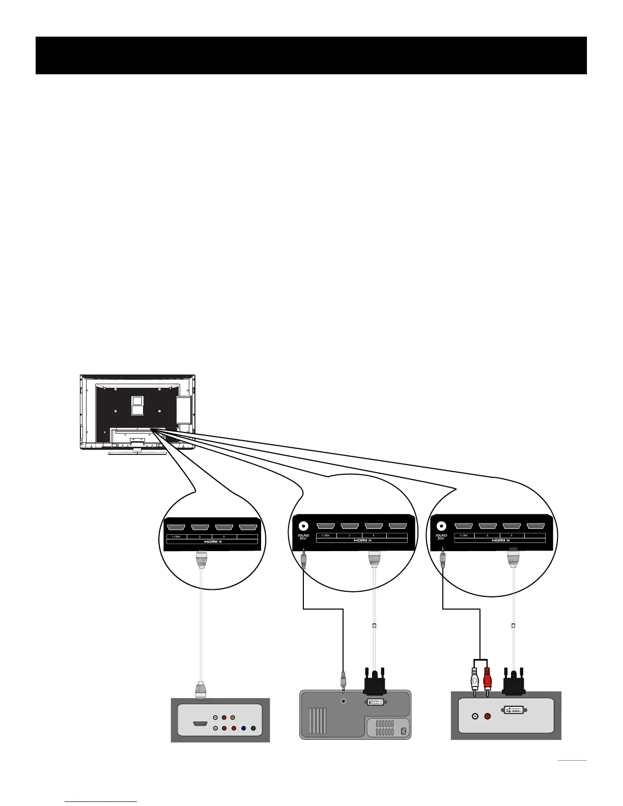 To connect a HDMI device, such as a DVD player, please Connect the HDMI1/DVI, 2, 3 or 4 jack on the back of TV to the