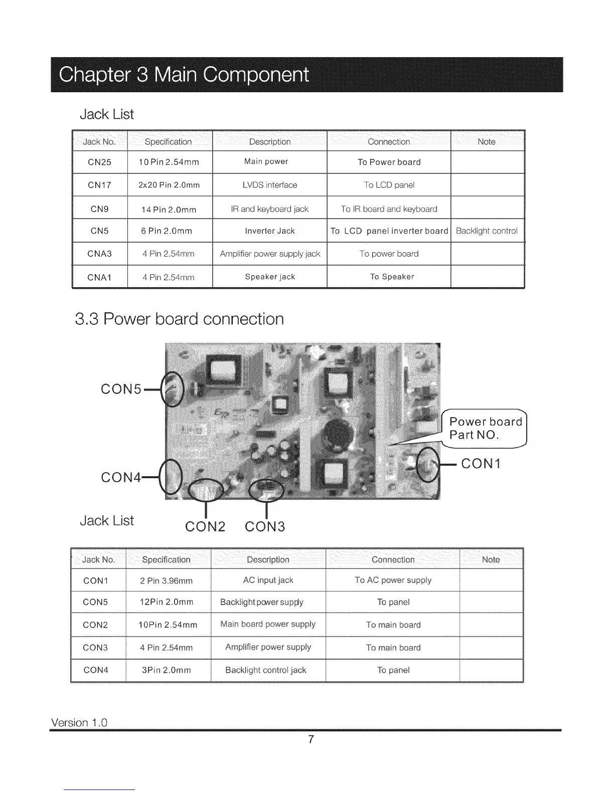 CON4 3Pin 2.0mm Backlight control jack To panel