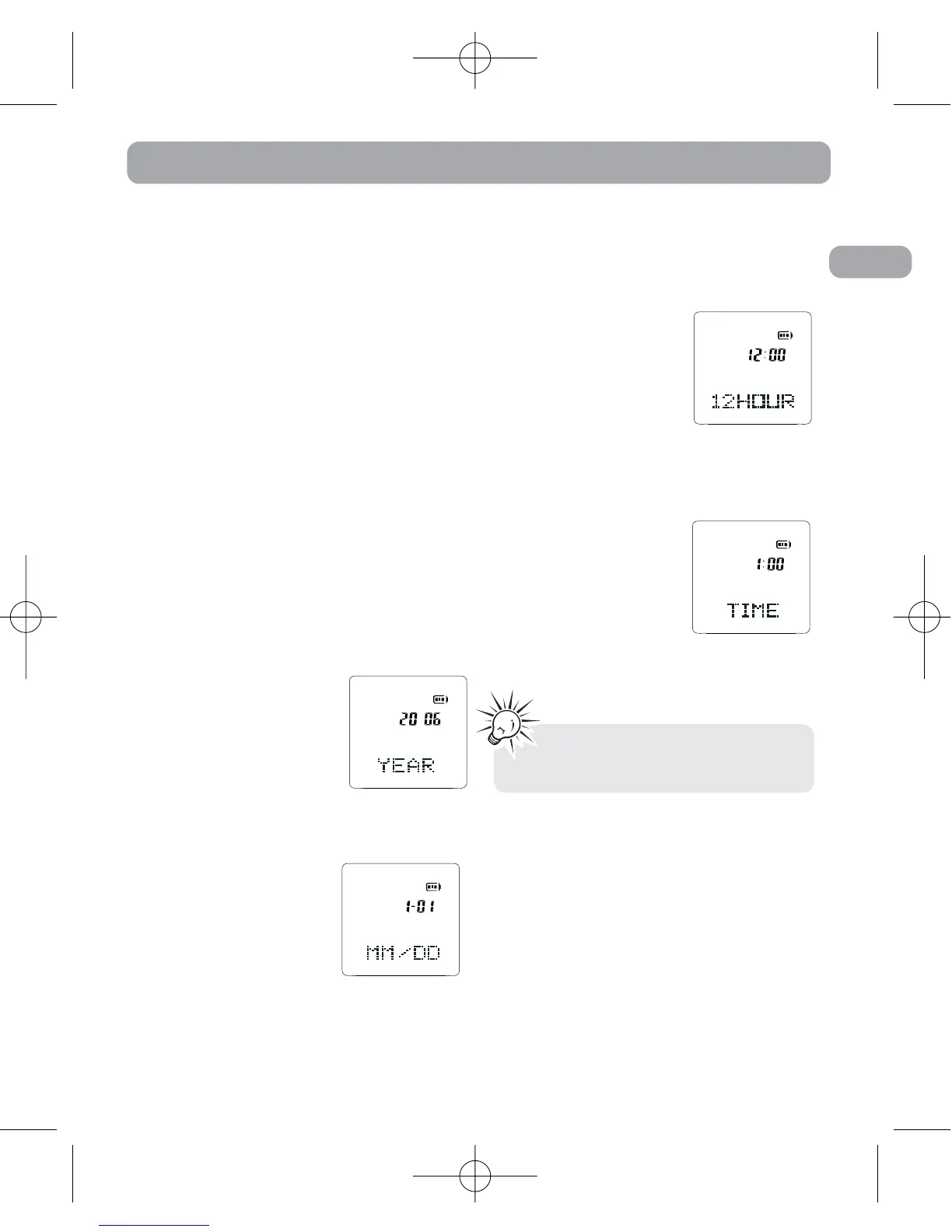 Year/Date/12/24/Time Setting