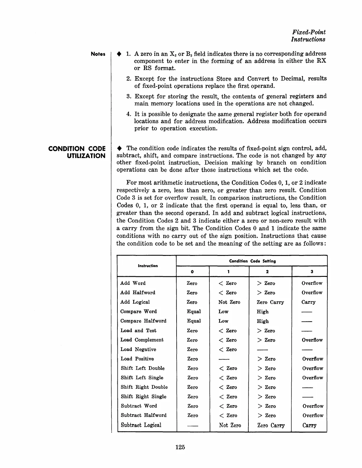 the sign bit. The Condition Codes ° and 1 indicate