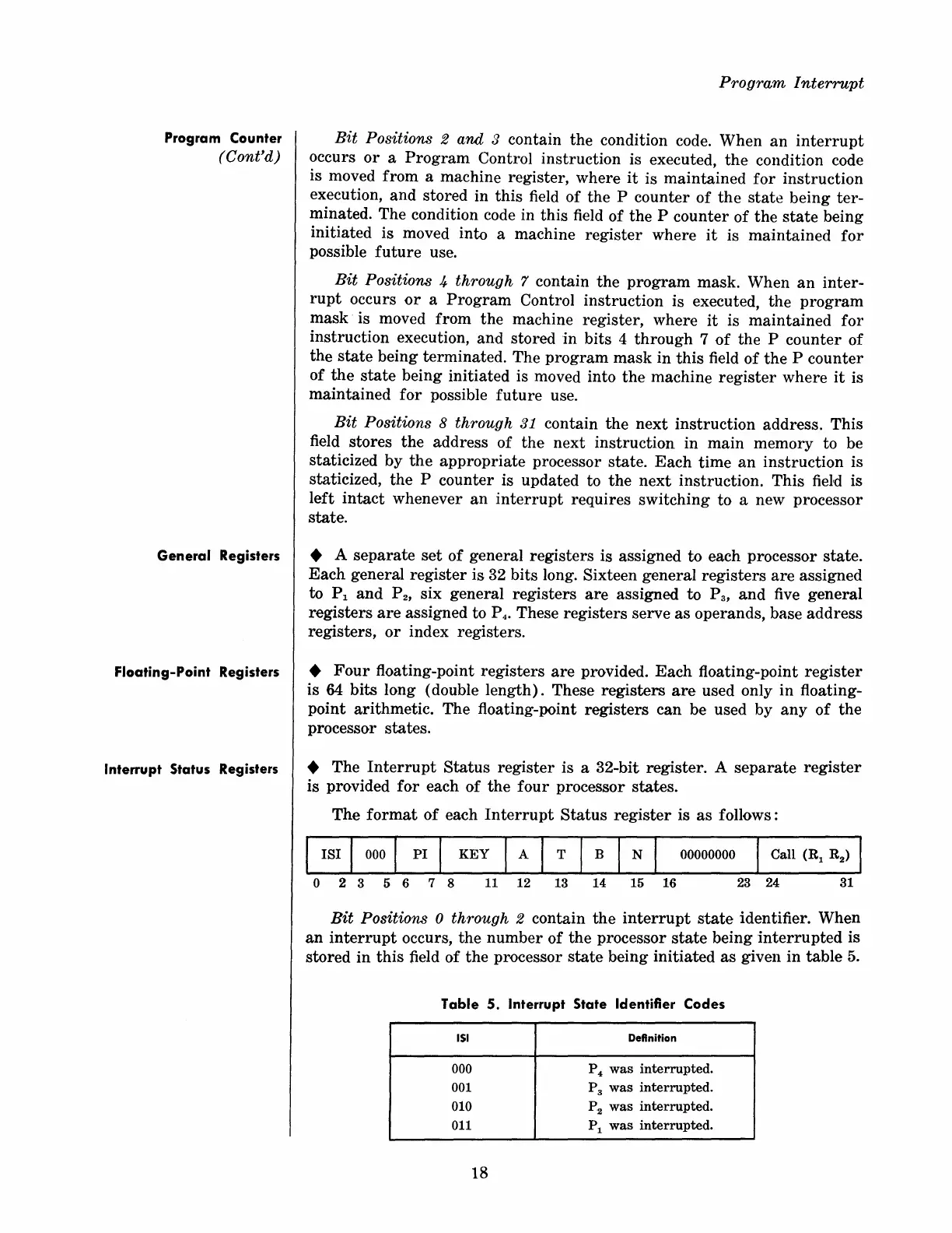 RCA 70/46 - General Registers; Floating-Point Registers; Interrupt Status Registers