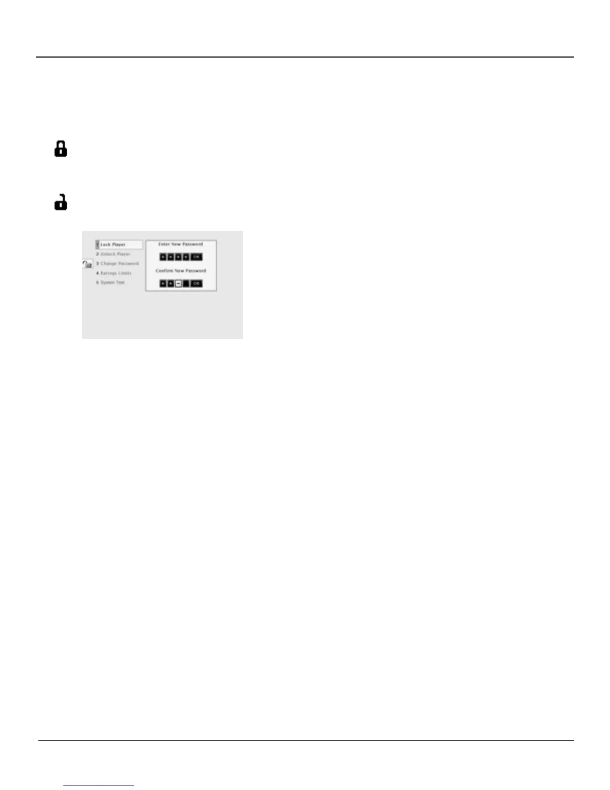 3. Highlight Lock Player and press OK. The Enter New Password