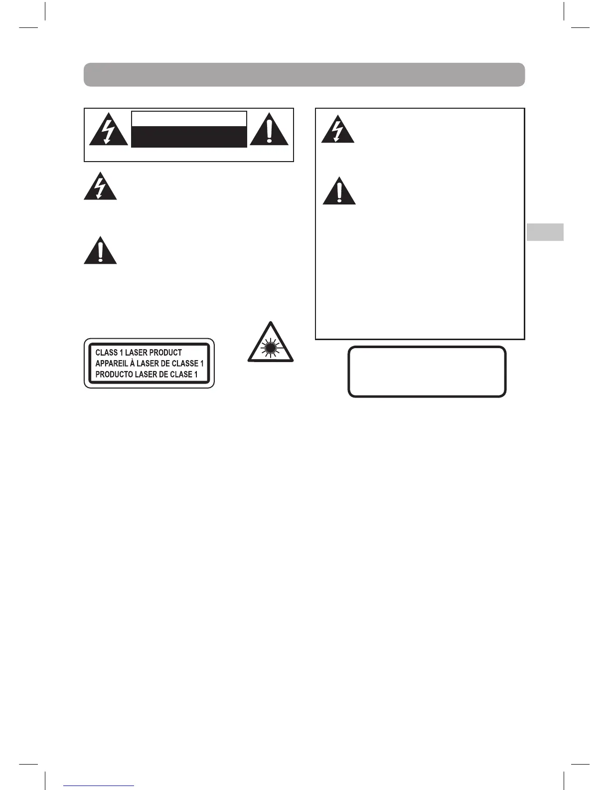 AVIS RISQUE DE CHOC ÉLECTRIQUE-NE PAS OUVRIR