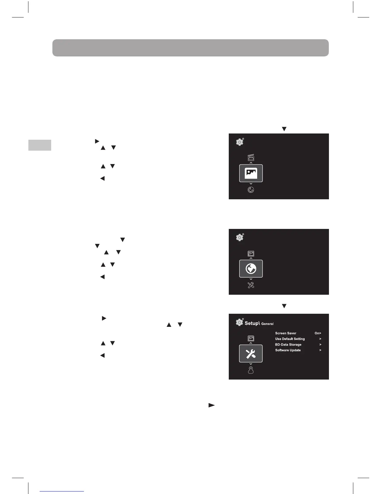 la opción (Screen Saver, Use Default Settings, BD-Data Storage o
