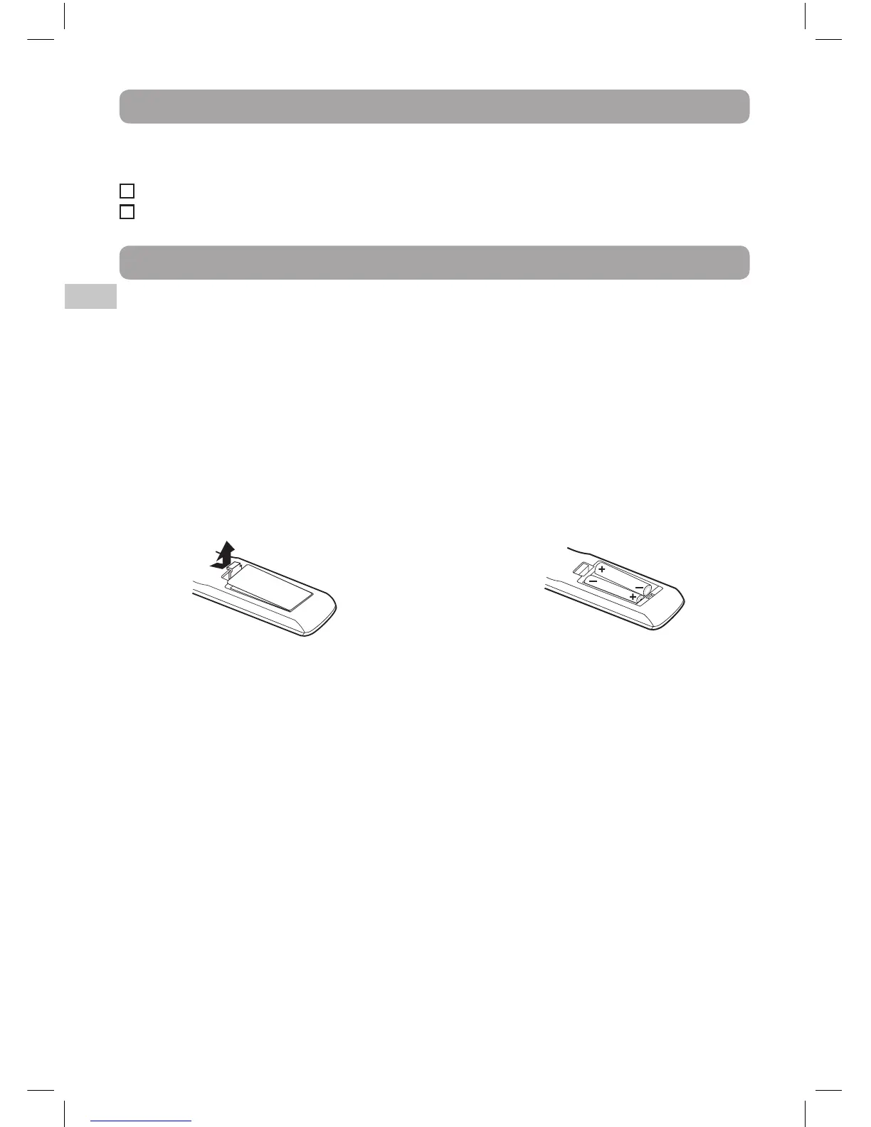 • Iftheremotecontrolisnotgoingtobeusedforalongtime,removethebatteriestoavoiddamagecaused