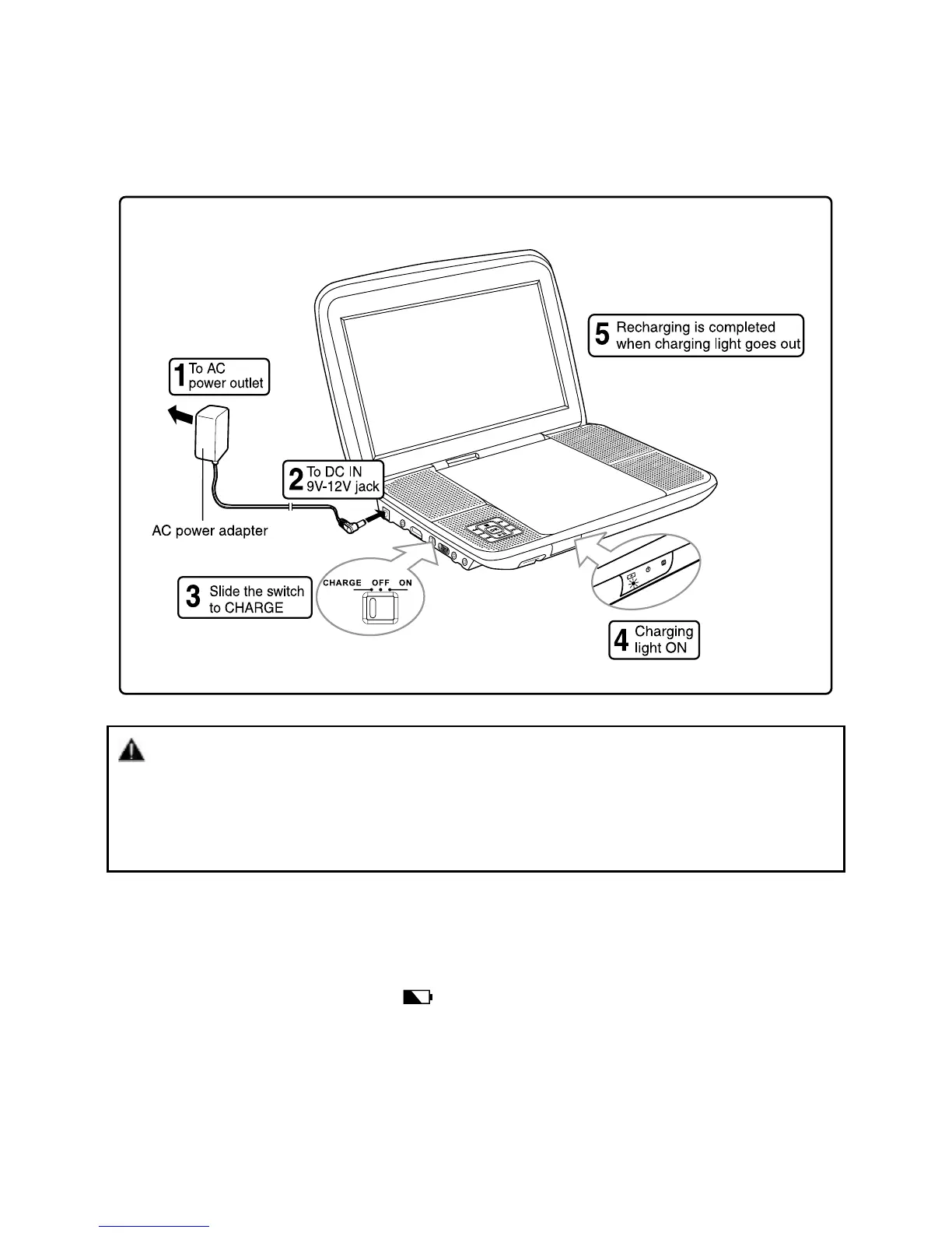 • Thebuilt-inbatterycannotberechargedwhentheunitisinpowerONmode.
