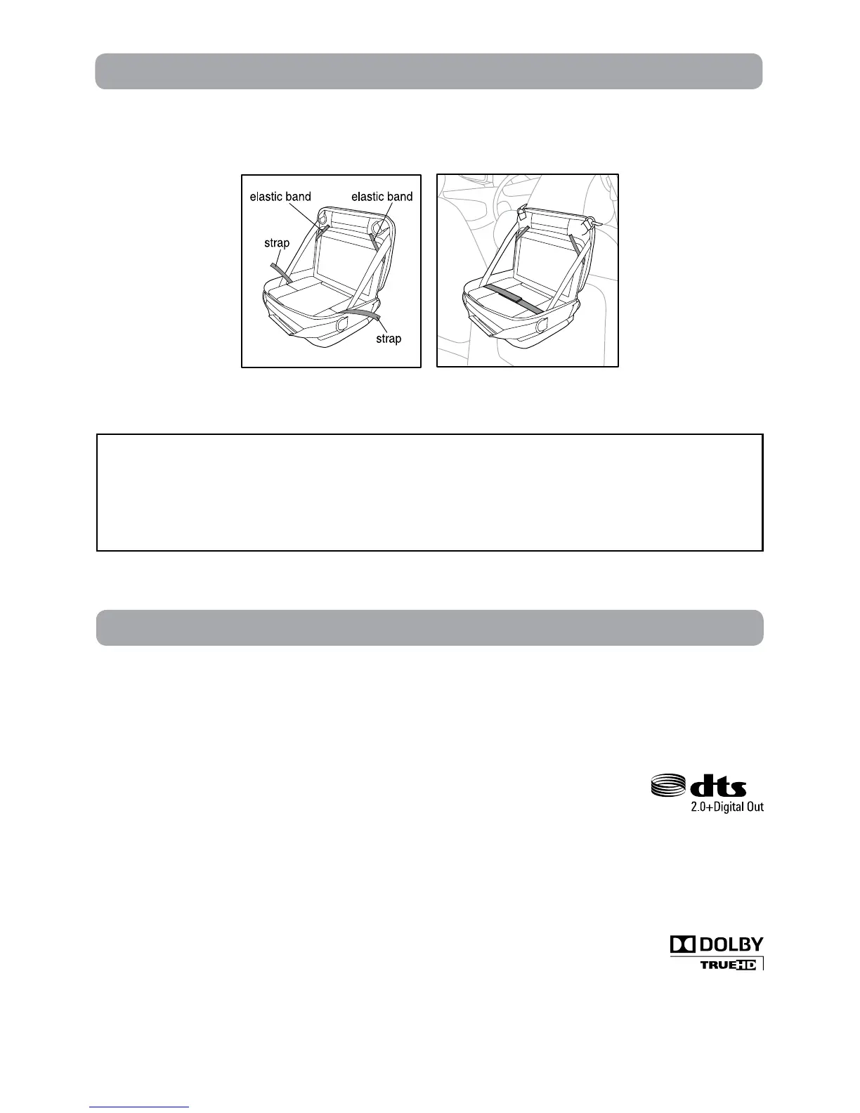 The carrying bag attaches to most automobile headrests for easy back-seat viewing. Use the straps and