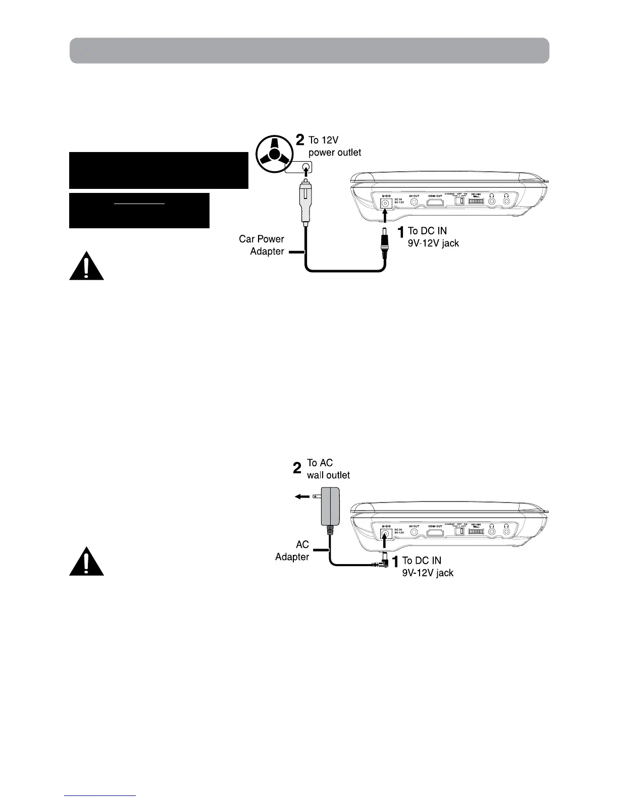 • The included 12V car power adapter is for use with this unit only. Do not use it with any other