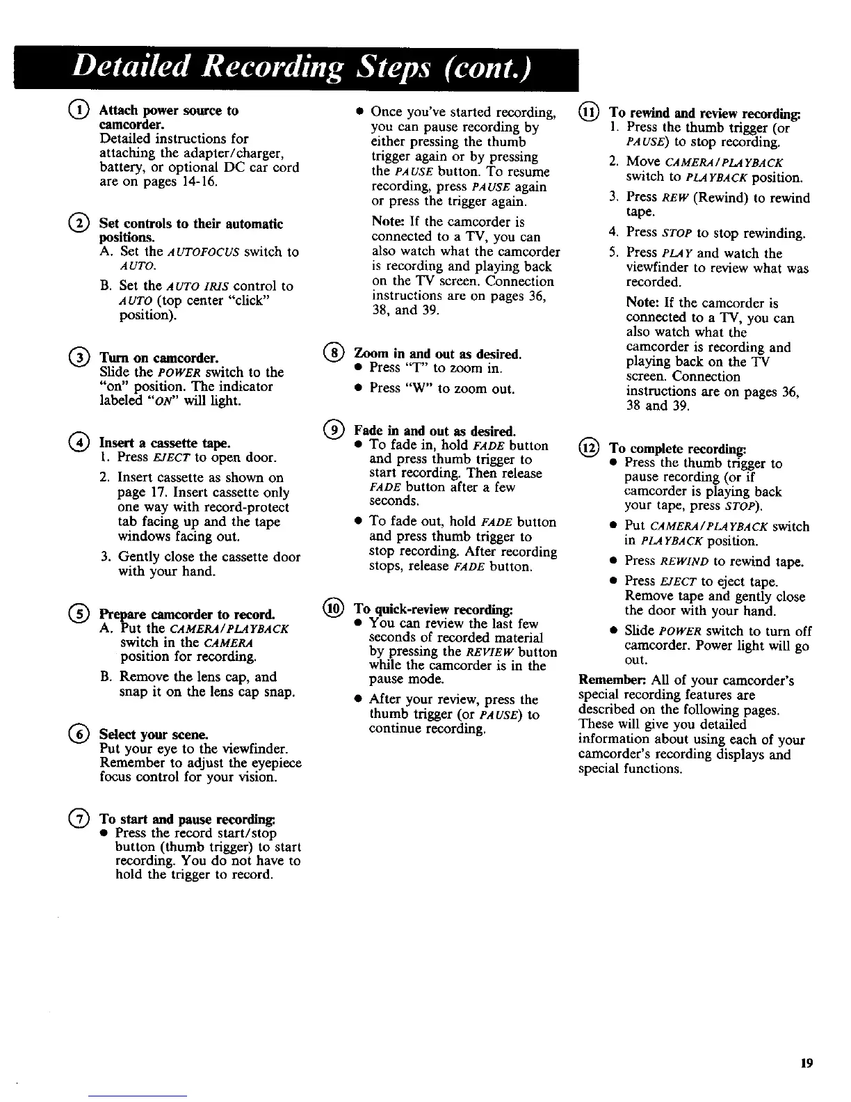 Remember:. All of your camcorder's