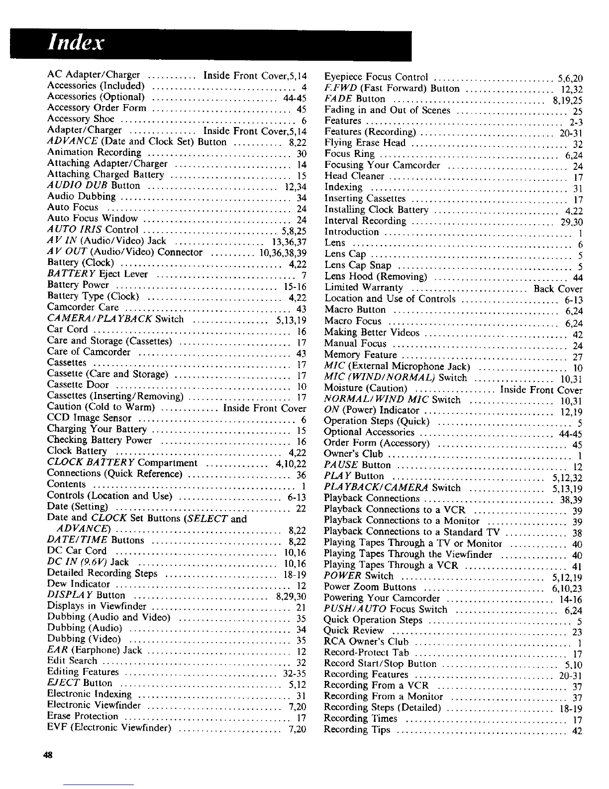 A V IN (Audio/Video) Jack .................... 13,36,37