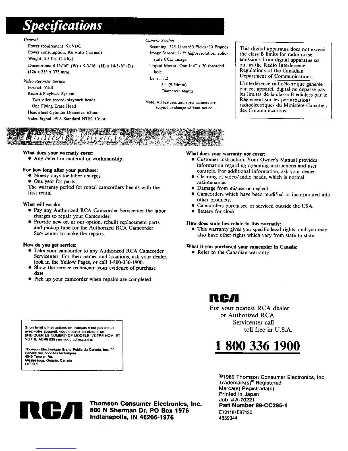 • Pay any Authorized RCA Camcorder Servicenter the labor