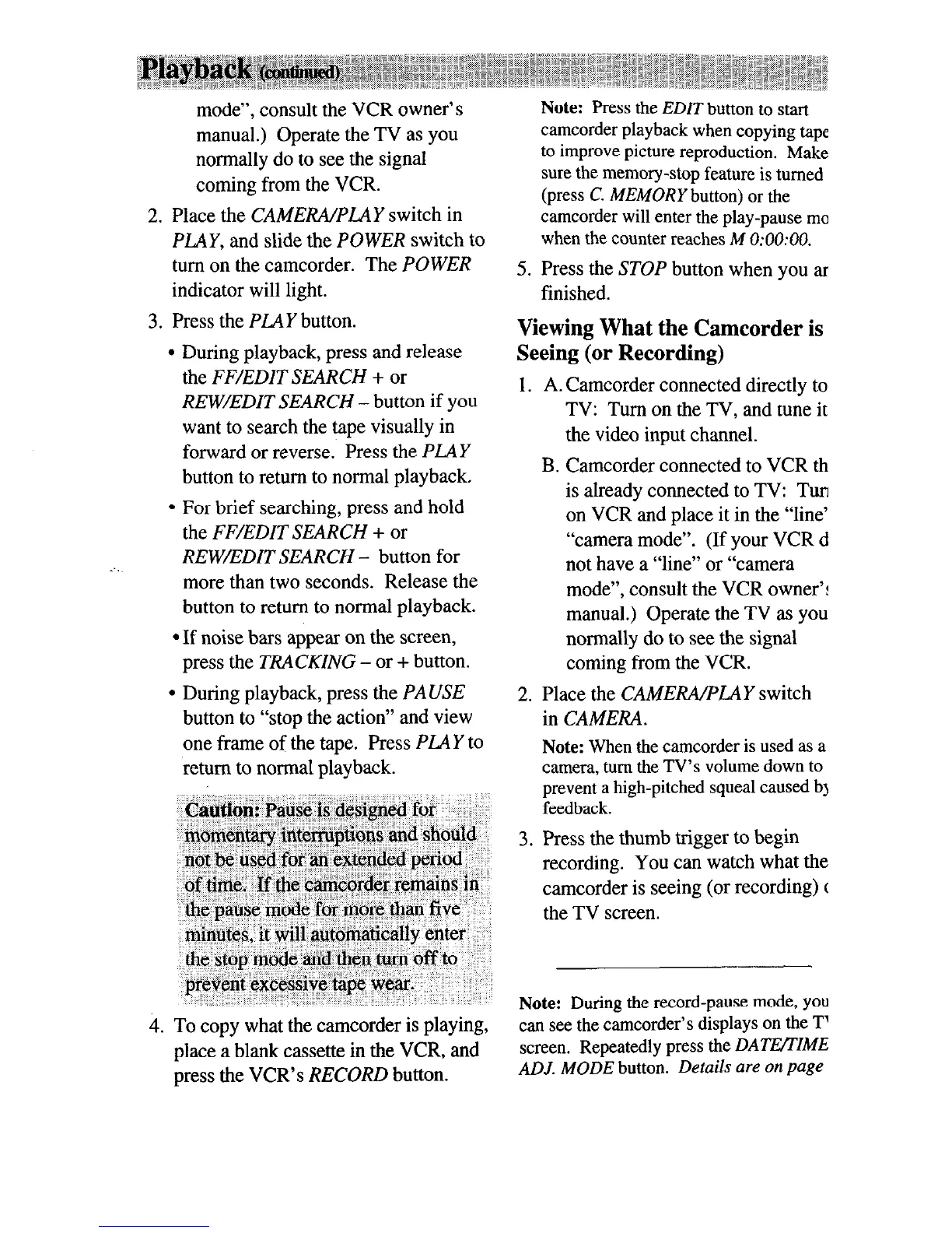 camcorder playback when copying