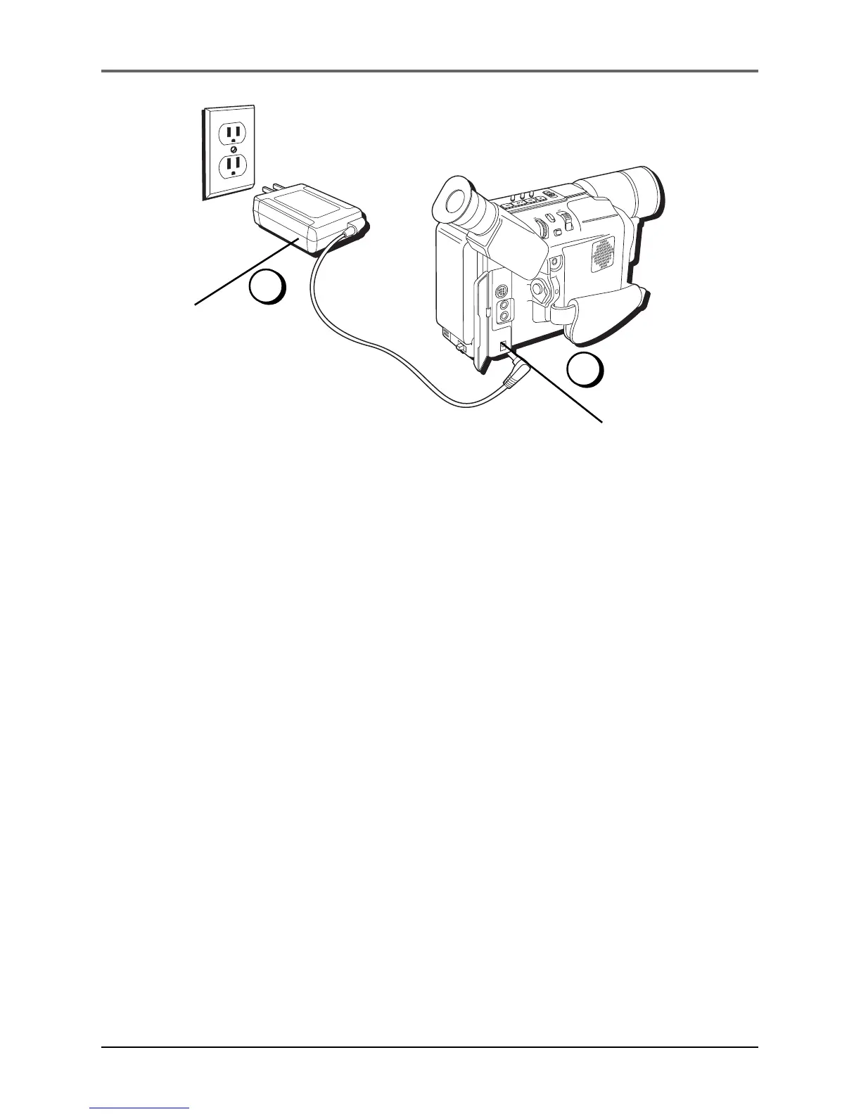 1. Plug the small end of the power supply into the DC IN jack on the camcorder.