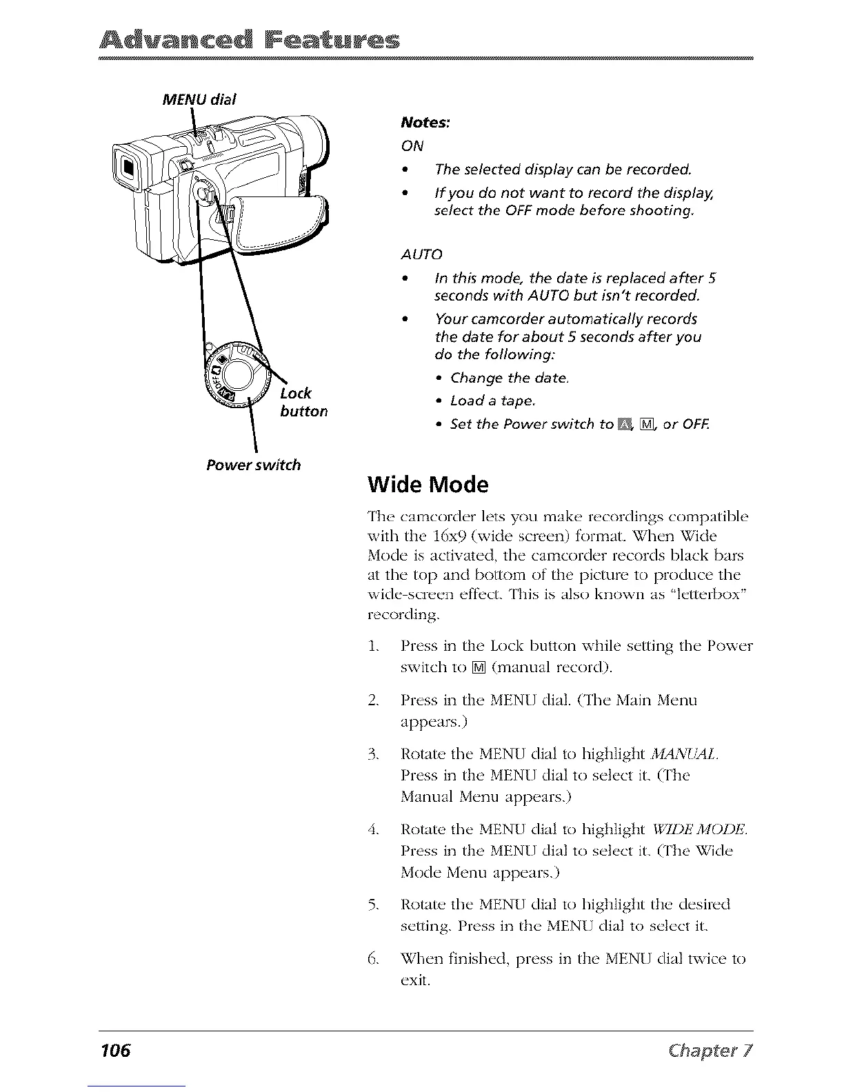 Mode is activated, the camcorder records black bars