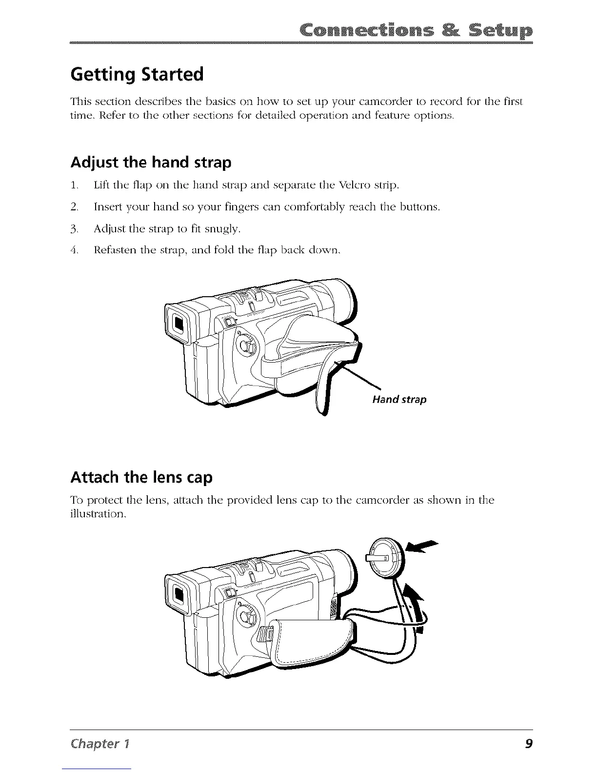 ['o protect the h'ns attach the pro\ided h'ns cap to the camcorder as shown in the