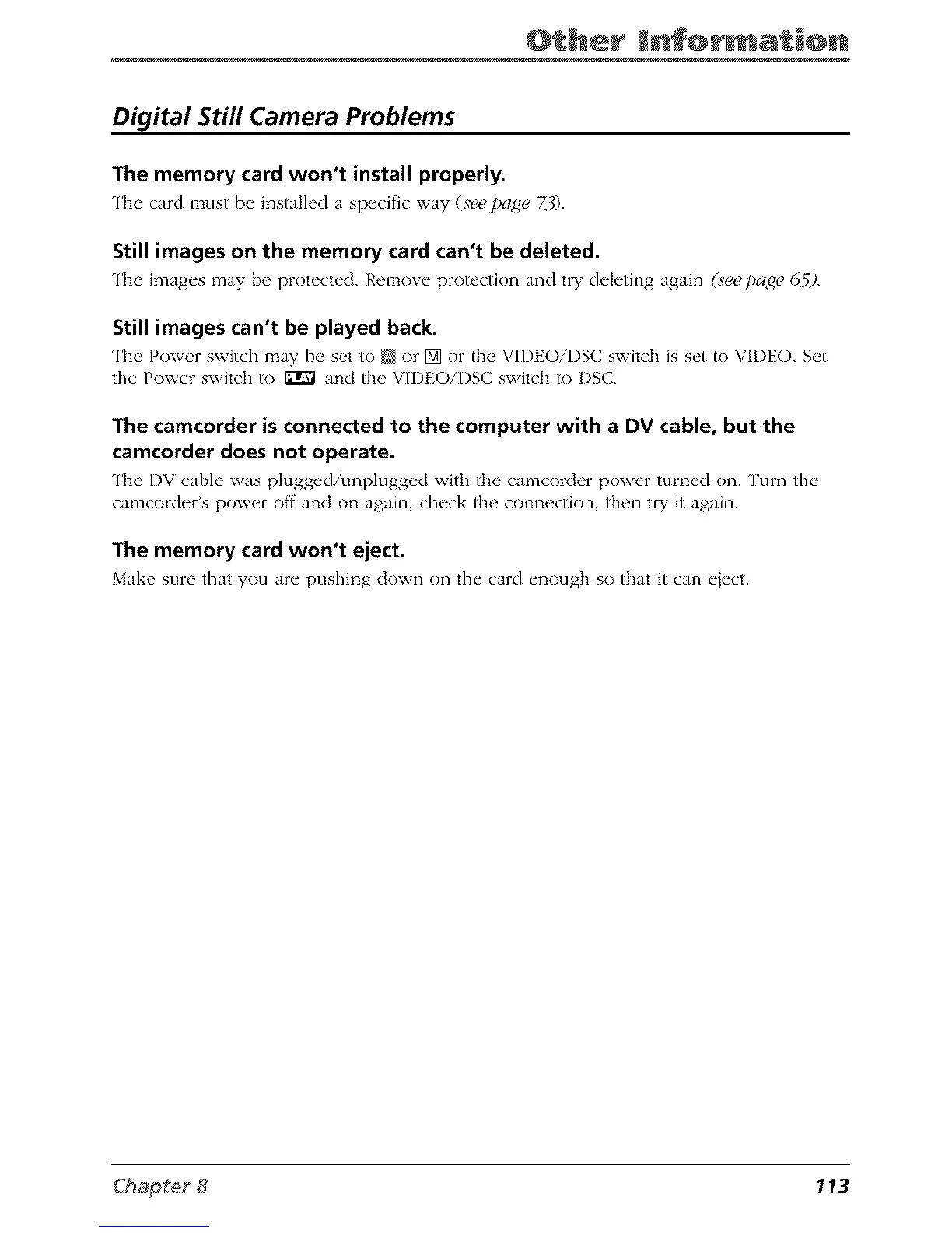 Digital Still Camera Problems