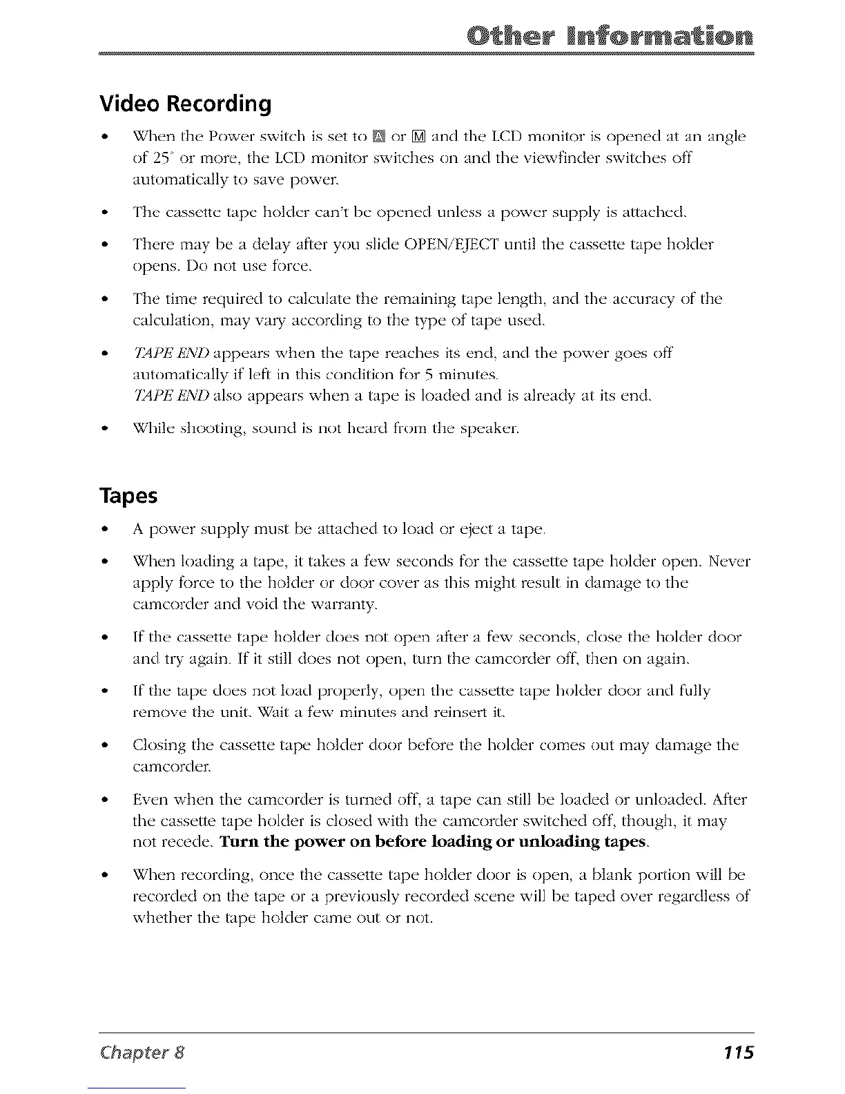 Even when the camcorder is turned off. a tape can still be loaded or unloaded. Af_er