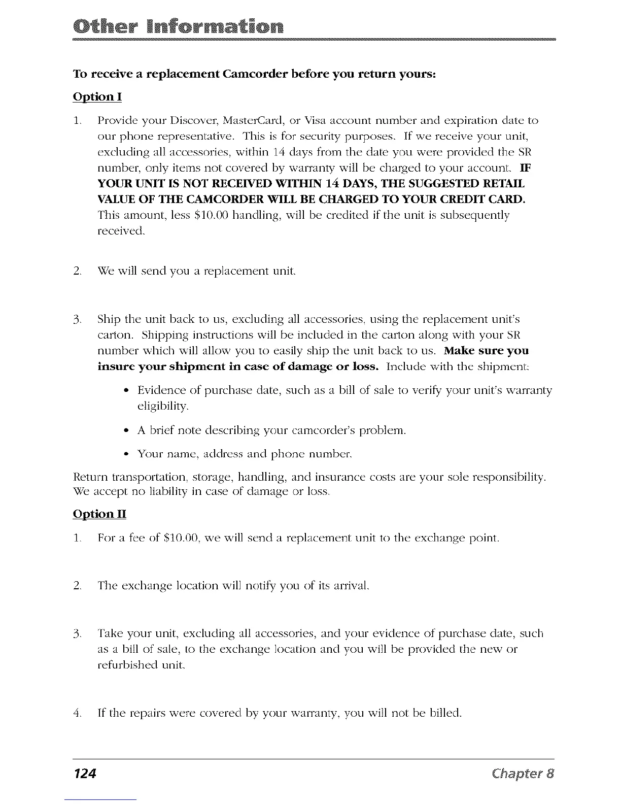 VALUE OF THE CAMCORDER WILL BE CHARGED TO YOUR CREDIT CARD.
