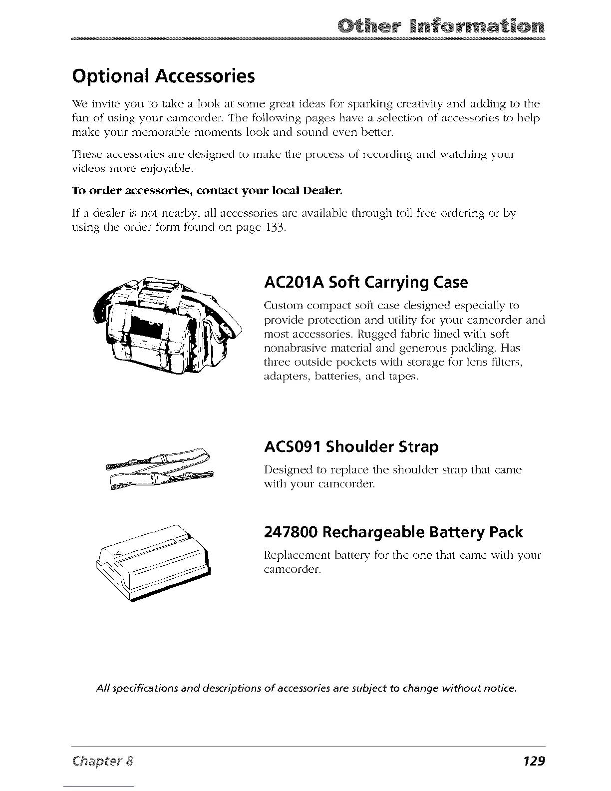 fun of using your camcorder. The _)tlowing pages have a selection of accessories to help