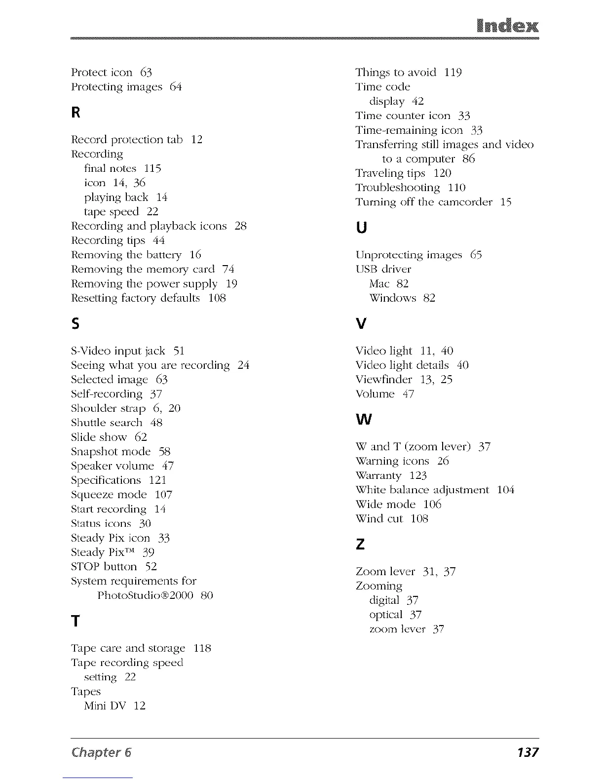 W and T (zoom lever) 37