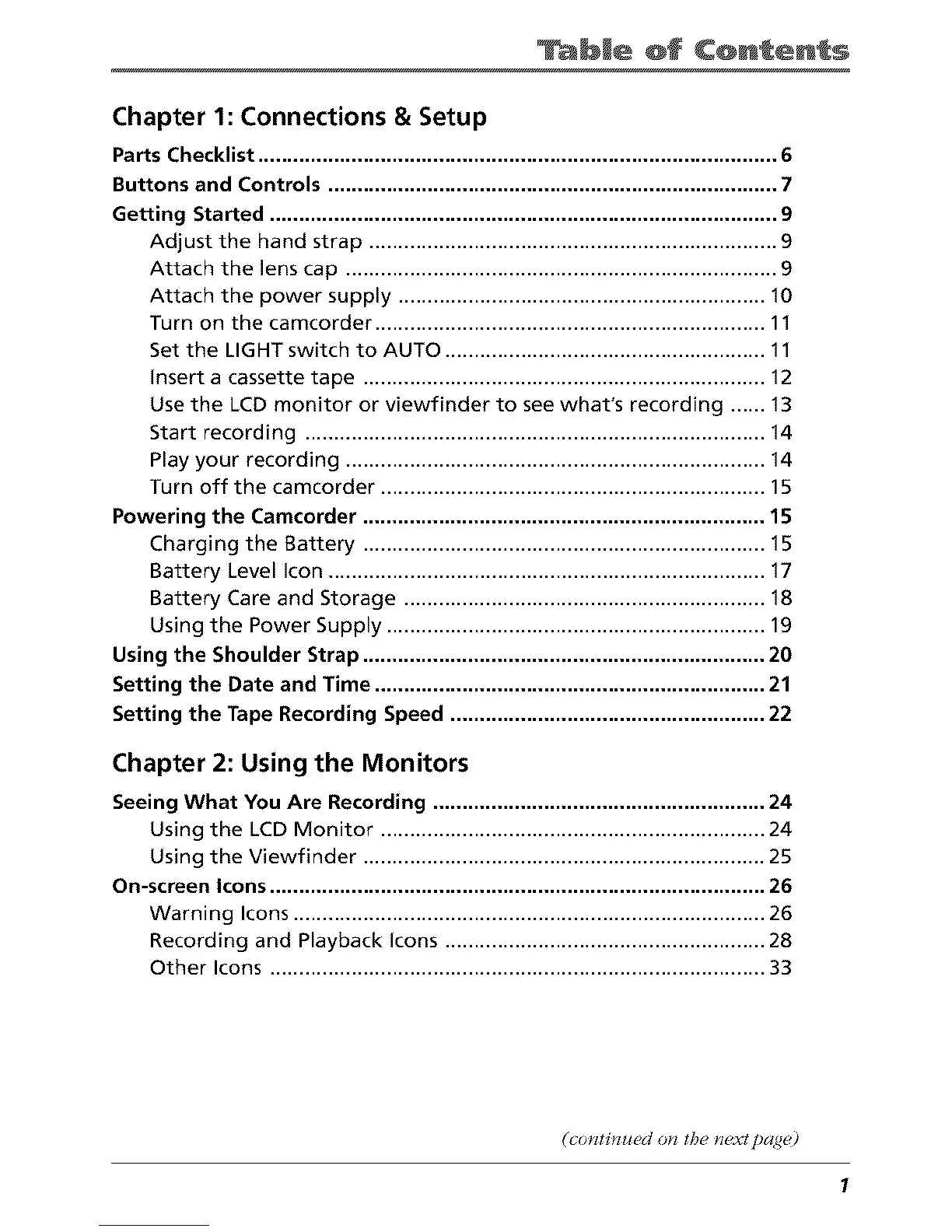 Powering the Camcorder ..................................................................... 15