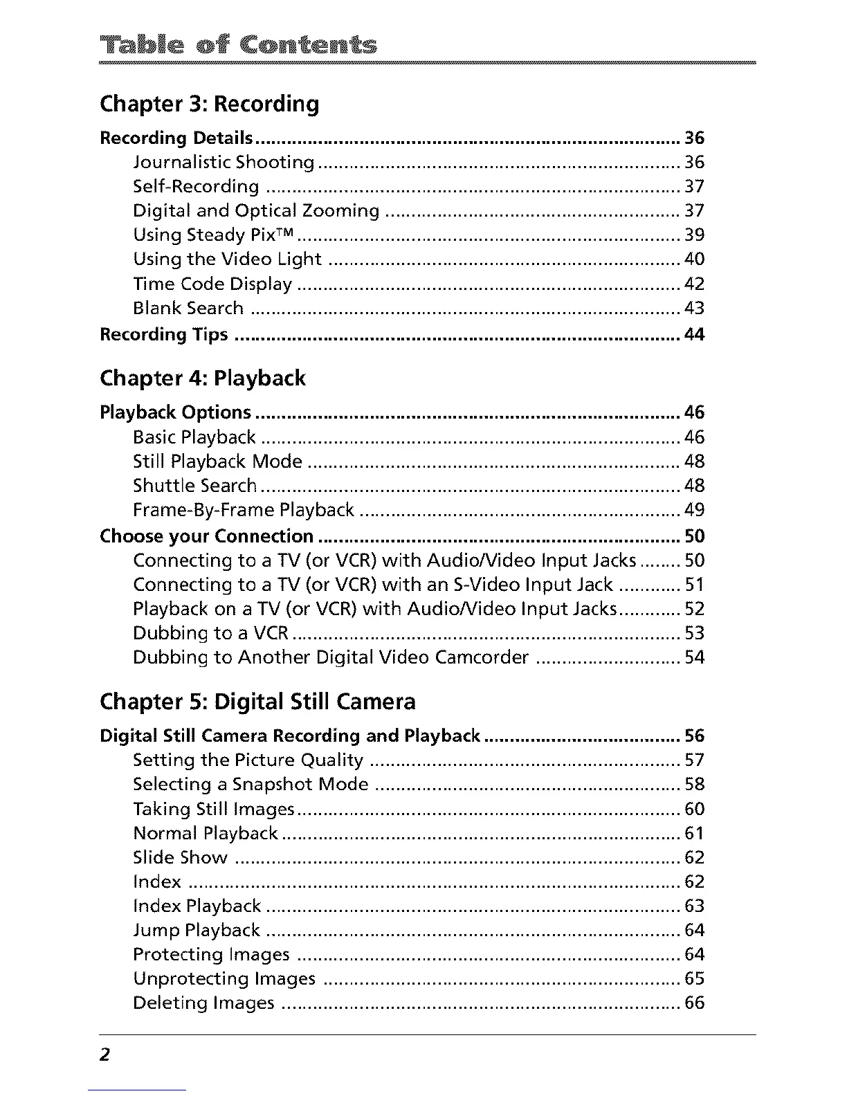 Dubbing to Another Digital Video Camcorder ............................ 54