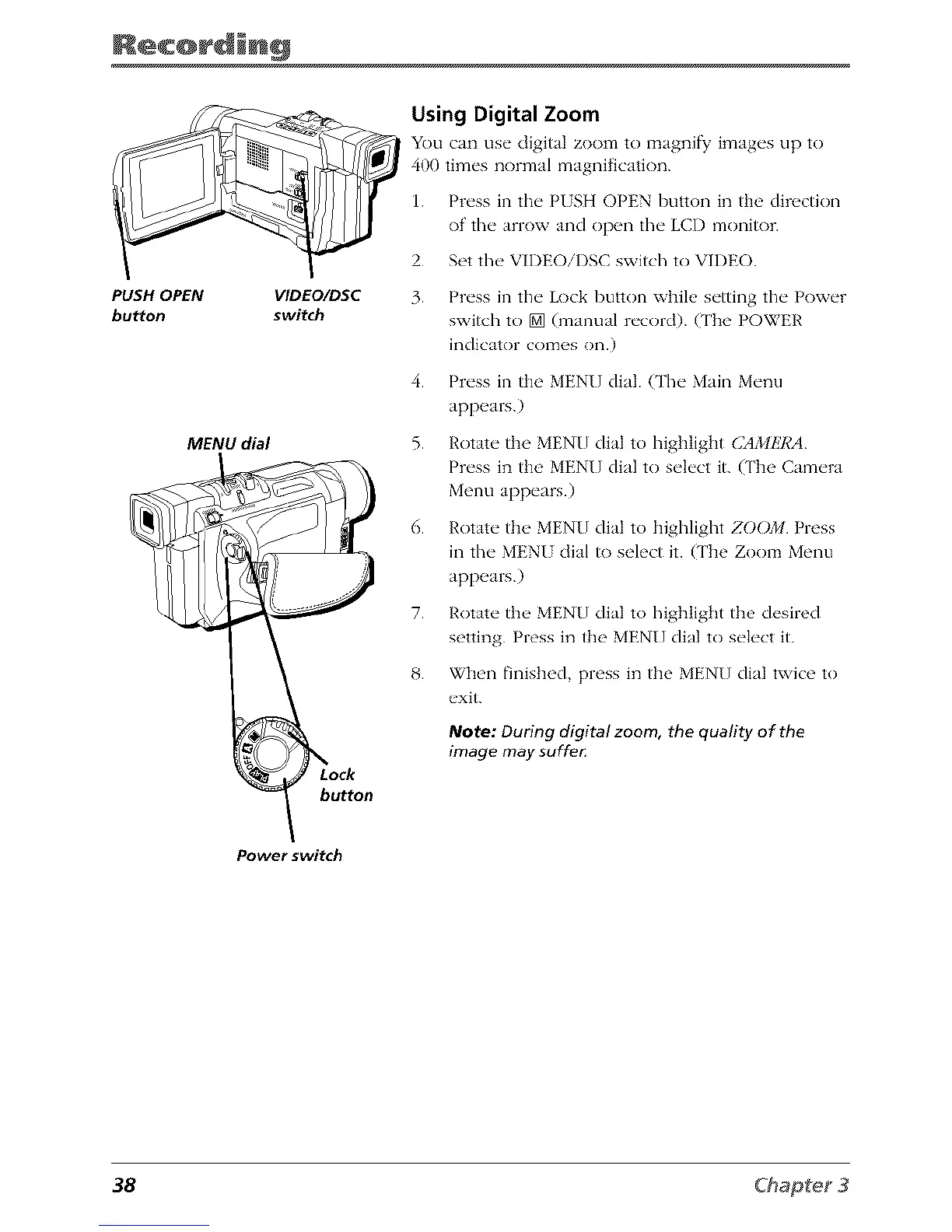Note: During digital zoom, the quality of the